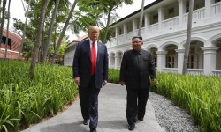 Trump dan Kim Jog-un pertama kali bertemu pada Juni 2018 lalu di Singapura