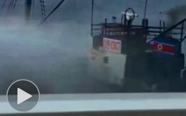 水産庁は18日、水産庁の漁業取り締まり船「おおくに」と北朝鮮の漁船が7日に衝突した際の映像を公開した。放水を受けた漁船が取り締まり船に接近して急旋回し、衝突した状況が映像で明らかになった。